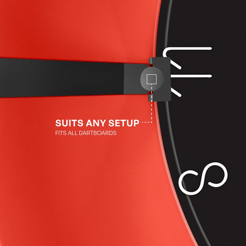 Una volta installato, Il Lumen Core non si muoverà se urtato. I semplici fissaggi si agganciano saldamente al bersaglio, il che significa che puoi utilizzare la luce sul tuo bersaglio freccette in sisal a prescindere dal modello o marca che possiedi e può essere installato con qualsiasi configurazione: solo bersaglio, bersaglio + dartboard surround, o anche in un bersaglio montato all'interno di un mobiletto.