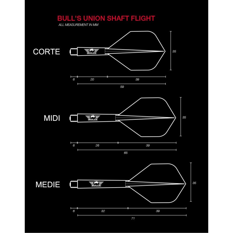 Le alette e astine Union sono adatte a tutti i tipi di gioco sia freccette soft dart che freccette steel dart. Il peso delle alette non incide sul bilanciamento delle freccette.