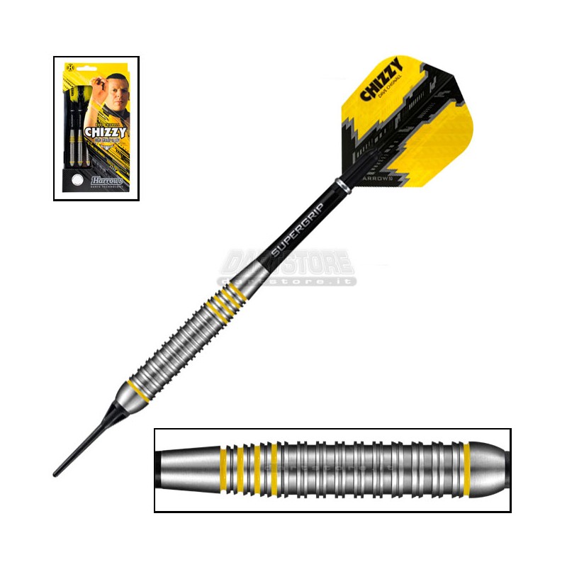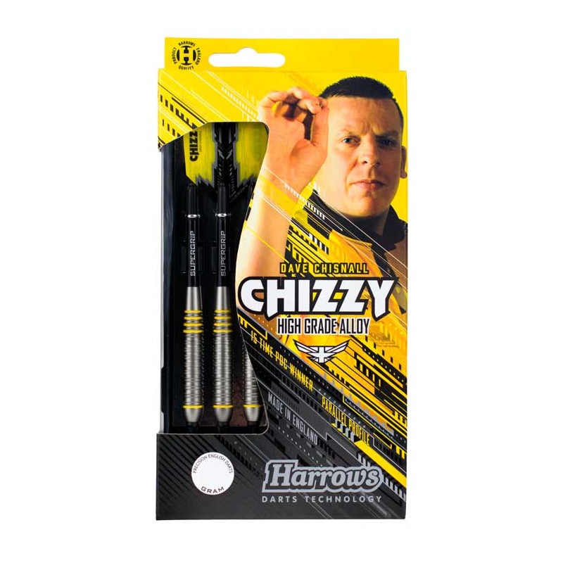 Le freccette Chizzy Brass rappresentano un'ottimo compromesso qualità/prezzo per i giocatori che si avvicinano per la prima volta allo sport delle freccette. Questo modello ha un design ispirato alle freccette Chizzy 80% ed è costruito in ottone rivestito che le rende economiche, ma con l'aspetto delle freccette professionali in tugsteno.