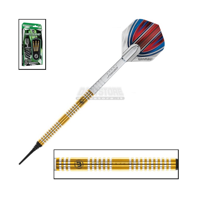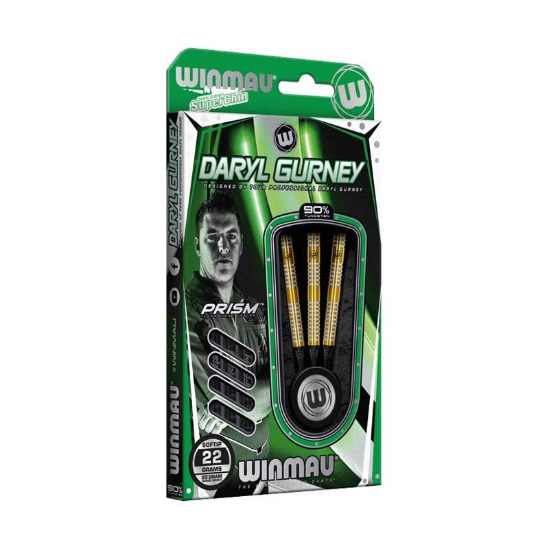 Queste freccette soft nascono dalla collaborazione tra l'azienda Winmau e il giocatore professionista Daryl "Superchin" Gurney, e sono costruite in tungsteno ad alta densità per una maggiore durata del grip (queste sono le stesse freccette che lui utilizza in gara e che vedete in TV).