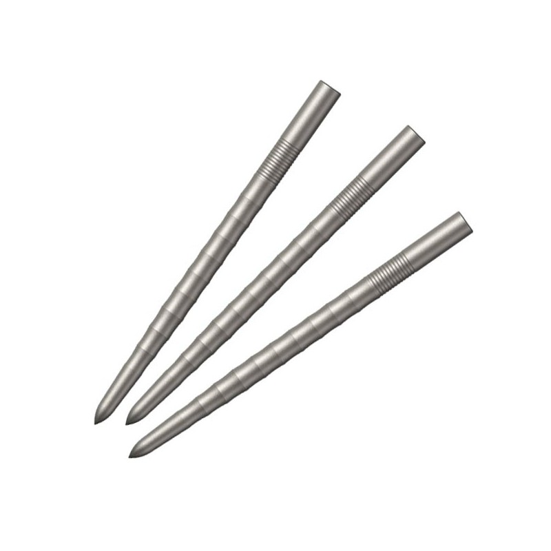 Punte in titanio con speciale lavorazione che garantisce un maggiore fissaggio al bersaglio evitando la caduta accidentale delle freccette, senza impattare sulla robustezza.